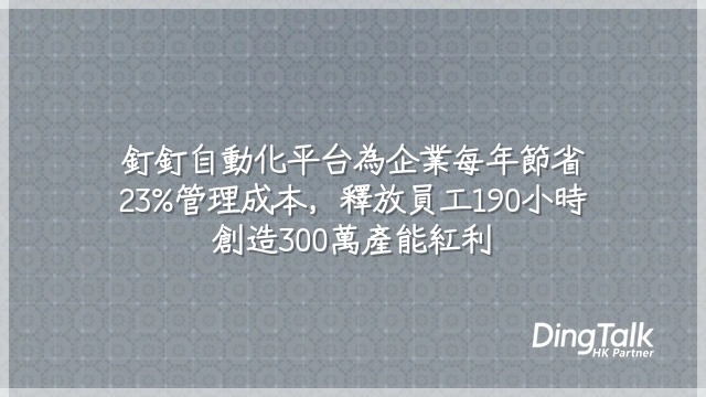 每名員工每年釋放近190小時,從行政工作中解脫,投入策略規劃與客戶互動。以一家200人、知識工作者年均成本HK$600,000的企業為例,僅「時間再分配」一項,便創造逾HK$300萬的隱性產能紅利。
