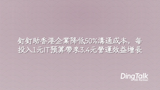 從中小企低成本導入,到今日以AI加速跨部門協作,釘釘已超越聊天工具定位。它正在成為香港企業的數碼神經中樞,串連人、流程與數據,驅動下一波效率革命。立即啟用釘釘,將每一分IT投資轉化為3.4倍營運效益增長,贏在溝通起跑線。