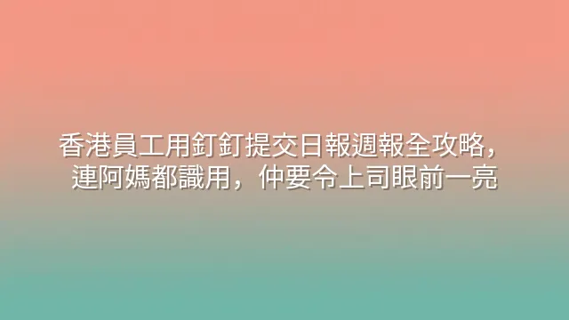 香港員工如何用釘釘提交日報和週報?答案係:打造專屬模板,一勞永逸!尤其成日寫同款格式嘅崗位,好似銷售每日KPI、客服處理 ticket 數、IT 跟進故障單,自訂模板可以慳足三分二時間。諗下,由每次打十行字變咗揿兩下,咪即係提早放工嘅前奏?