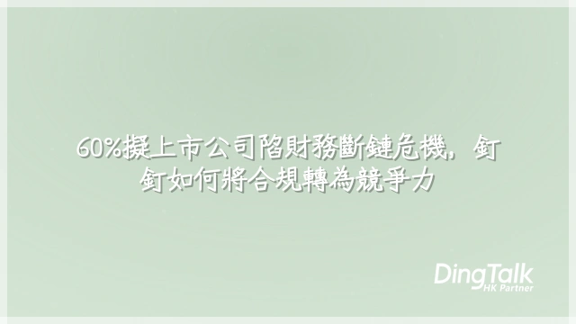 企業在衝刺上市的最後一哩路,最怕財務合規出現「技術性失誤」——一張無法追溯的付款單、一段缺失的審批紀錄,都可能延遲聆訊時程。根據2024年香港會計師公會的觀察,近四成擬上市公司因系統數據斷點需額外提交解釋文件,平均推遲上市進度6至8週。釘釘的分階段合規架構,正是為了系統性化解這類風險而設計,不僅降低合規成本,更將技術部署轉化為治理能力建設。