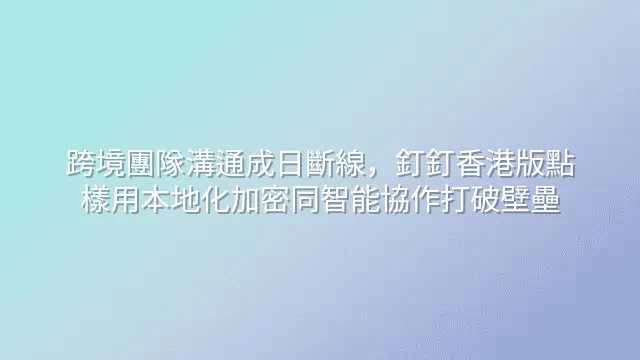 跨境團隊溝通問題,往往唔係人懶,而是工具拖後腿。釘釘香港版針對呢個痛點,重新定義遠程協作底層邏輯。當其他平台仲喺多個應用之間跳來跳去,釘釘香港版已經將會議、文件、審批同通知整合於一體。試想想,一個橫跨紐約、倫敦同香港嘅項目組,每朝要對三次時間、轉五次格式、再追十條read但無response嘅訊息——呢種碎片化溝通模式,根本係慢性消耗團隊凝聚力。更嚴重者,使用非合規即時通訊工具傳遞財務或客戶資料,隨時觸犯香港《個人資料(私隱)條例》(PDPO),引發法律風險。釘釘香港版唔單止解決技術問題,更加從合規角度出發,為跨境團隊建立可信賴嘅溝通基礎設施。