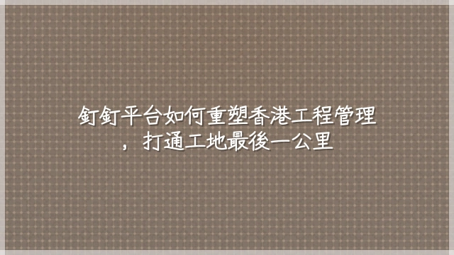 實踐案例 香港大型基建項目如何運用釘釘提升效率