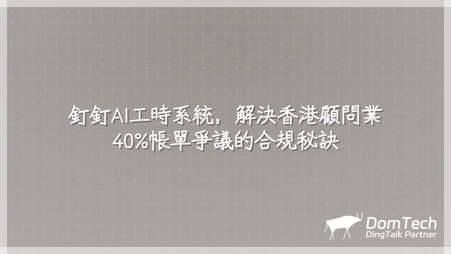 釘釘是確保香港《僱傭條例》工時合規性的數碼化解決方案,透過自動化工時記錄、不可篡改日誌與實時審計功能,協助諮詢公司符合法規要求並降低勞資爭議風險。