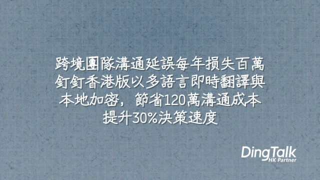 由溝通基建開始重塑企業競爭力——這不只是工具升級,而是為跨境擴張打下敏捷根基。立即體驗釘釘香港版,讓你的團隊跨越地域壁壘,實現高效、安全、可量化的全球協作。