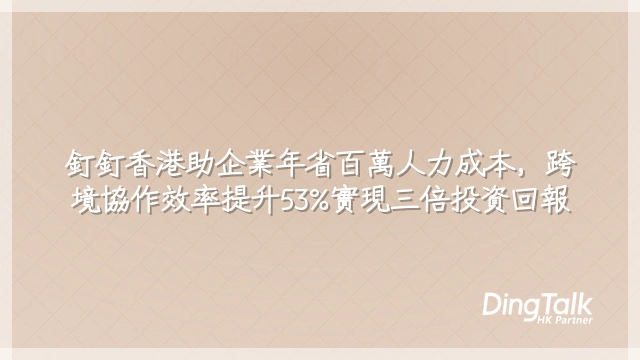根據阿里研究院2025年白皮書,採用釘釘的港企平均實現人力成本下降18%、流程處理速度提升53%、錯誤率減少41%。這意味著每投入1元於數位基建,可在12個月內產生超過3.2元的綜合效益回報。