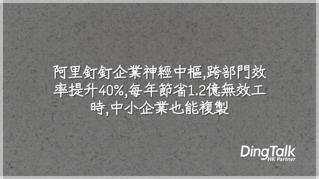 你真正需要的不是更多工具,而是一個能整合溝通、流程與數據的統一數碼工作空間。唯有如此,才能把被浪費的12小時/每週轉化為創造價值的生產力——這正是釘釘為阿里建構「企業神經中樞」的起點。