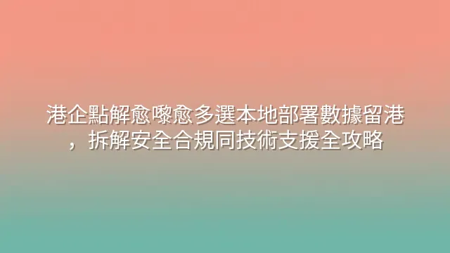 釘釘加千義通問本地部署數據留喺香港更安全,唔再只係一句宣傳口號,而係切實可行嘅企業生存策略。尤其對於金融、醫療同法律等高度監管行業,數據一旦流出境外,隨時觸犯《個人資料(私隱)條例》第33條關於跨境傳輸嘅限制。本地部署最大優勢,就係將所有核心資料——包括員工通訊紀錄、內部文件、審批流程——全部鎖定於香港境內伺服器,連備份副本都唔過境。呢種物理隔離,比起依賴海外雲端供應商所聲稱「加密傳輸」、「區域節點」實際得多。當突發故障出現,IT團隊唔使等跨時區支援,廿分鐘內工程師已經到場排查,真正做到危機零延遲響應。