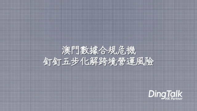 企業要確保釘釘符合澳門《個人資料保護法》要求,應立即依循「評估資料流→啟用區域儲存→配置GDPR式權限→開啟操作審計→簽署DPA」五步驟行動。延誤部署不僅可能觸發最高達年度營業額2%的行政罰款,更將動搖客戶對企業數據治理的信任基礎。
