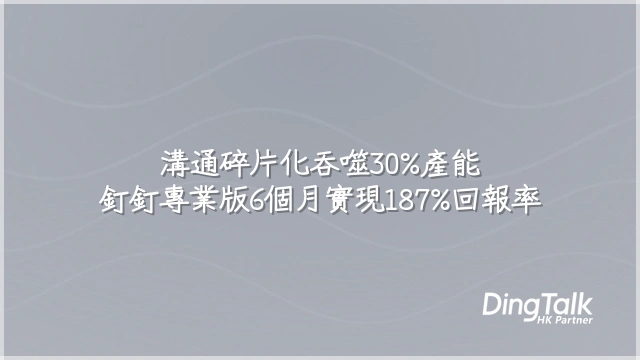 根據阿里集團與第三方評估,釘釘專業版平均在六個月內實現187% ROI,營運效率提升30–50%。若你仍在手動追蹤進度,團隊每週可能浪費近10小時在重複協調與找文件上,市場機會正悄悄流失。