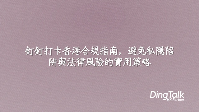 DingTalk 打卡功能與地方勞工法規適配說明:根據《個人資料(私隱)條例》,僱主使用釘釘收集員工地理位置資料可能構成違法,除非符合「合法、公平、透明」三大原則。定位數據屬敏感個人資料,未經適當通知與同意即收集,將違反私隱守則第1原則。