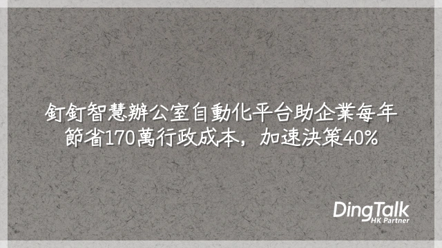 導入釘釘智慧辦公室自動化平台後,一家200人企業每年可節省行政成本HK$170萬至HK$238萬,回收期僅8至14個月。這不僅是效率工具的升級,更是將固定管理支出轉化為可量化的財務回報(ROI),釋放人力投入高價值業務活動。