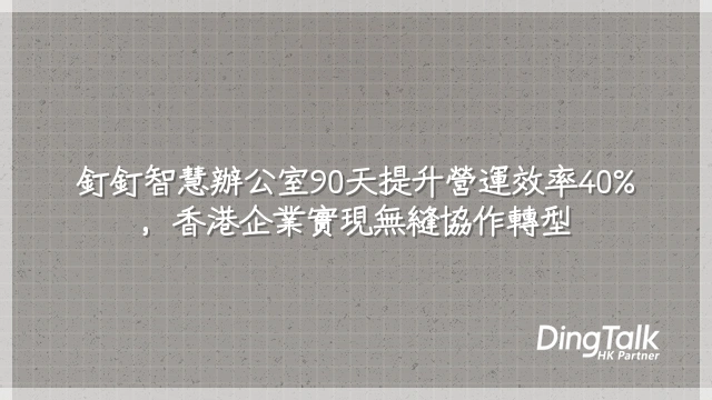部署釘釘智慧辦公室的關鍵在於系統性落地,而非技術堆疊。透過五步實戰框架——流程盤點、痛點排序、模組設定、溝通培訓與KPI優化,企業可在90天內實現協作效率提升40%以上,並降低至少25%溝通成本(根據香港生產力促進局2024數碼轉型案例報告)。