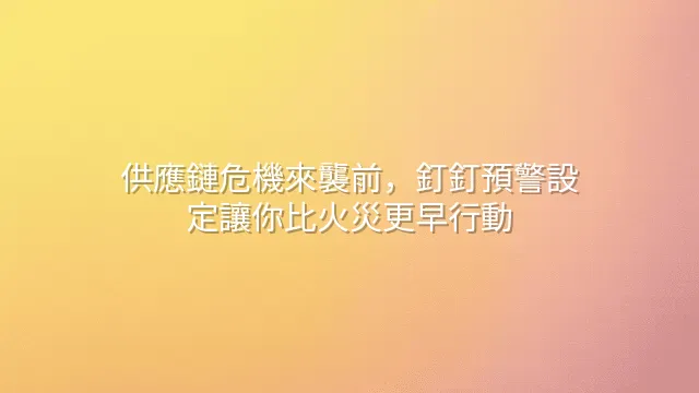 技巧分享時間:避免將所有警報集中派發給同一人,否則容易引發「警報疲勞」,導致重要訊息被忽略。建議依風險等級分層處理,紅色警報(如中斷風險)即時推播至高階管理層;黃色警報(如延遲跡象)則以每日彙總方式傳送。同時善用釘釘的「條件群組」功能,根據不同供應商、商品類別或地區動態調整閾值,防止因天氣因素誤判為重大危機。這些細節雖微小,卻是釘釘供應鏈預警設定能否落地運作的決定性因素。