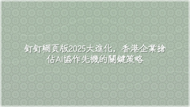 展望2026年,釘釘網頁版將引入AI代理(Agent)架構,企業部署方案需預先規劃「人機協作節點」,例如自動生成會議紀要並觸發後續待辦事項。這意味著最佳化不僅是技術配置,更是組織行為的前瞻設計。