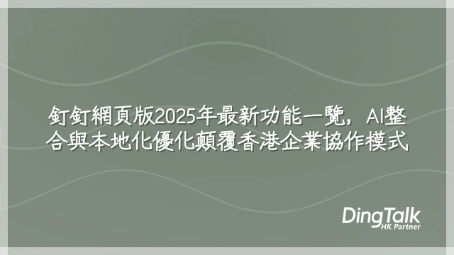 香港用戶現可透過釘釘網頁版2025年享受一系列針對本地需求設計的智能協作功能。這些升級不僅提升效率,更貼合金融、零售與專業服務業高頻溝通的運作節奏。