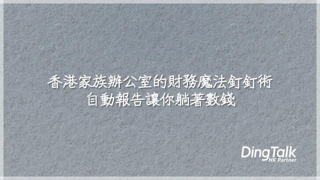 「財務報告還要人手整?」在2024年的香港,如果家族辦公室還靠秘書列印PDF、貼Excel、熬夜做PPT,那不只是落伍,根本是拿家族資產玩俄羅斯輪盤。別忘了,你爸信任的會計師可能搞錯匯率,你哥盯的基金報酬率可能漏算管理費——而這些,釘釘(DingTalk)一個自動化流程就能搞定。