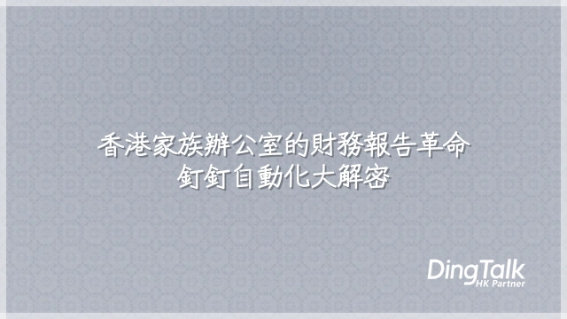 當你以為家族辦公室只是「有錢人請秘書記帳」的時候,他們早已在釘釘上跑起自動化財務報告流水線了。別再用Excel一格一格敲數字,現在香港的SFO與MFO正悄悄用釘釘整合銀行API、會計系統與合規模組,把原本要三天才出得來的報表,壓縮成「早安,老闆,今日財報已推送至您的釘釘聊天窗」。