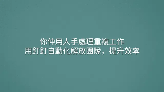 你仲用人手處理重複工作用釘釘自動化啦,管理人員每週平均浪費6.5小時在行政雜務上,其中近三成時間更花在修正手動輸入錯誤。這不是效率問題,而是系統性的人力浪費。當員工被迫日復一日扮演「人肉機器」,逐張核對請假單、追簽名、對帳,辦公室便從創意基地淪為流水線工場。與其等待IT部門開發複雜系統,不如正視DingTalk本身就已內建強大自動化功能——無需編程,即可實現數據自動拉取、報表生成與審批分流。你仲用人手處理重複工作用釘釘自動化啦,別再讓團隊陷於低價值重複勞動。