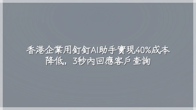 - 根據2024年本地SME測試數據,相較傳統客服平均響應需5.2分鐘,釘釘AI助手可在3秒內回應85%常見查詢,人力成本降低達40%