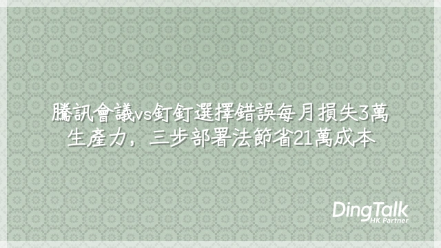 • 第三步:制定遷移路線圖 — 包含分階段切換時程、IT支援配置,以及員工培訓資源整合。騰訊會議提供粵語教學影片庫(助新員工上手時間縮短至1.2小時),釘釘目前僅有普通話內容,對本地團隊構成學習門檻 — 意味培訓成本可節省逾 $1.5 萬