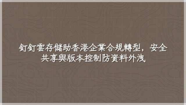 根據該報告,採用釘釘雲存儲的香港企業平均縮短42%文件審批週期,尤其在金融與專業服務行業表現突出。其價值不僅在技術層面優化流程,更在合規框架下重建企業對數碼資產的掌控力,為後續建立精細化權限體系奠定基礎。