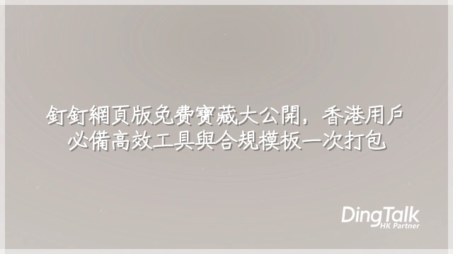 所有官方釘釘模板均可於「模板中心」免費下載並即時套用,無需額外安裝。香港用戶只需登入釘釘網頁版,進入工作台即可搜尋及啟用本地化模板,全程安全合規,資料保留在企業自有帳號內。