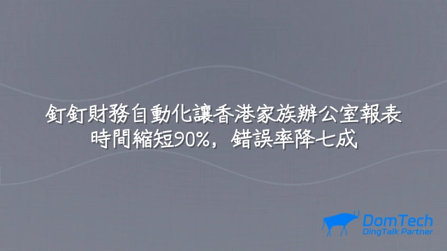 根據2024年亞洲家族辦公室科技採用報告顯示,導入釘釘方案後,93%的單一家族辦公室實現月度財報週期縮短至72小時內,且錯誤率下降逾七成。此不僅釋放財務團隊專注於價值分析,更強化了向海外信託受托人與稅務顧問提供即時決策支持的能力。