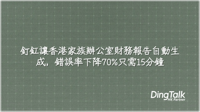 香港家族辦公室運用釘釘(DingTalk)實現財務報告自動化,關鍵在於其整合工作流引擎與低程式碼開發環境,使非技術背景的財務主管能自主建構合規且可重複使用的報表系統。面對傳統手動彙整易出錯、跨部門協作延遲等管理痛點,釘釘透過標準化資料輸入與自動化流程觸發,大幅降低人為干預風險。