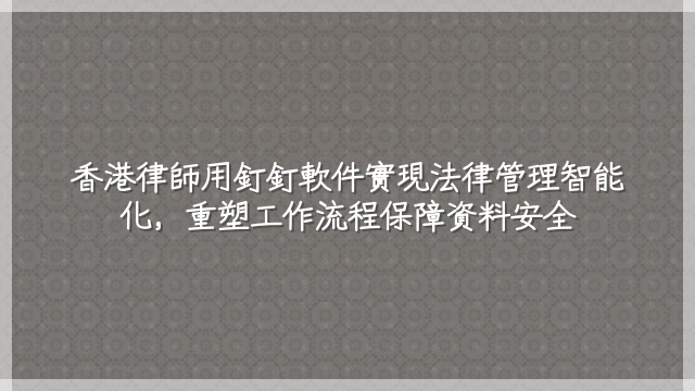 釘釘軟件作為阿裡巴巴集團旗下的企業級協作平台,正逐步改變香港律師行的工作方式。其技術架構符合香港《個人資料(私隱)條例》要求,支援端對端加密與本地化數據部署,使律師能在保障客戶資料安全的前提下自動化推進案件。