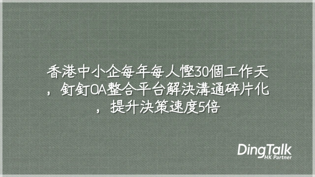 這些問題疊加,每名員工每年因低效產生的隱性成本達港幣$42,000(基於時薪HK$180 × 234浪費工時)。當競爭對手以數位協作平台實現即時同步與自動化流程,你的團隊仍在填補管理裂縫。下一章揭示:如何用釘釘OA將混亂變為秩序,把浪費產能轉化為增長動能