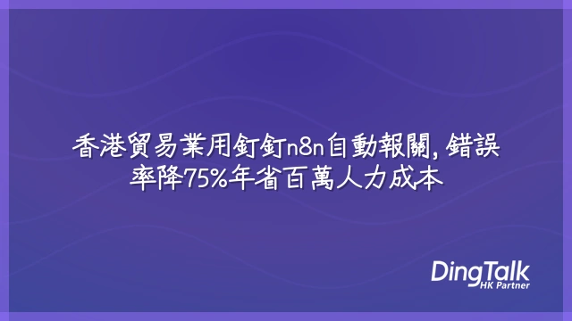 自動化報關流程的釘釘n8n集成已在多家香港貿易企業落地見效,其中「環亞通訊」最具代表性。該公司專營電子零件進出口,每月處理逾500票報關單,現僅需一人監控系統,實現人力精簡與效率雙升。