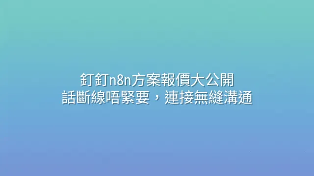 但最核⼼問題唔係斷線本身,而係斷線後嘅「溝通真空」——冇人知邊個負責跟進、資料點算、會議記錄點補。正因如此,一啲看似微不足道嘅技術問題,隨時釀成項目延誤甚至客戶投訴。所以,要解決呢啲煩惱,靠的唔係祈禱網絡之神保佑,而係一套真正穩定、備援完善、支援無縫重連嘅通訊方案。而呢度,就係釘釘n8n方案報價大公開嘅用武之地——唔單止防斷線,更要斷咗都照keep住flow!