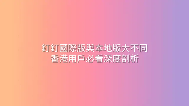 總結來說,本地版像個貼地管家,細節滿分;國際版則像留學歸來的高材生,格局大卻偶爾水土不服。香港用戶若常與內地合作,選本地版準沒錯;若是國際團隊作戰,國際版更能打。選對版本,你就是老闆心中的「釘釘達人」!