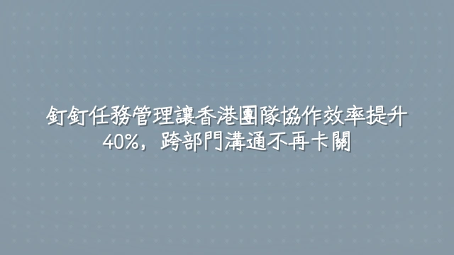 此模式尤其提升地理分散團隊的同步效率——即使成員分處港島與九龍辦公室,任務狀態更新仍能在 90 秒內 觸發全員通知,取代冗長的群組追蹤。更重要的是,所有指派紀錄留存於釘釘工作台,形成可稽核的協作軌跡,為後續流程優化提供數據基礎。這種由標籤驅動的指派邏輯,正逐步取代以信箱為中心的工作模式,成為整合項目週期全流程的起點。
