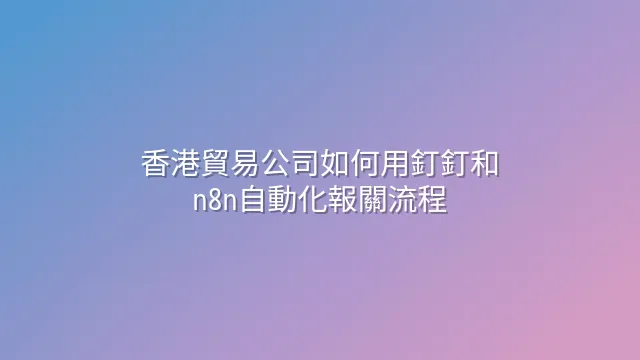 話說香港某貿易公司阿明,以前每日面對堆積如山的報關資料,簡直係「人肉轉換器」——收到郵件就手動輸入Excel,再傳給清關行,錯漏百出之餘仲要加班到三更。直到佢哋決定用釘釘同n8n搞一次「流程大革命」。