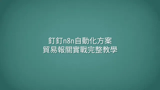 報關不是賭博,不能靠運氣。掌握正確知識,才能避免讓你的貨物變「人質」。接下來,我們就要用釘釘與n8n,把這些繁瑣流程自動化,讓系統幫你盯文件、抓錯誤,不再當海關的「頭痛患者」。