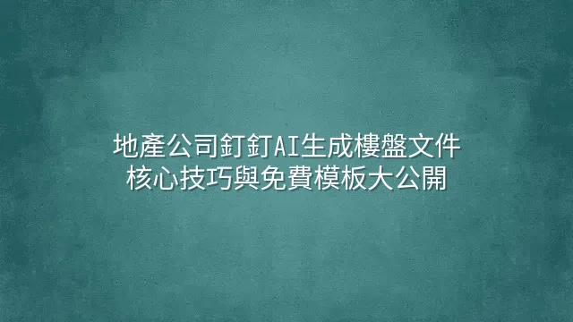 免費模板下載與應用——這可不是普通的「模板大放送」,而是地產界的「AI外掛神器包」!用過我們推薦的釘釘AI生成樓盤文件技巧後,下一步當然要配備強力裝備。現在,多款專為地產設計的免費模板已上線,一鍵下載,馬上變身文件高手。