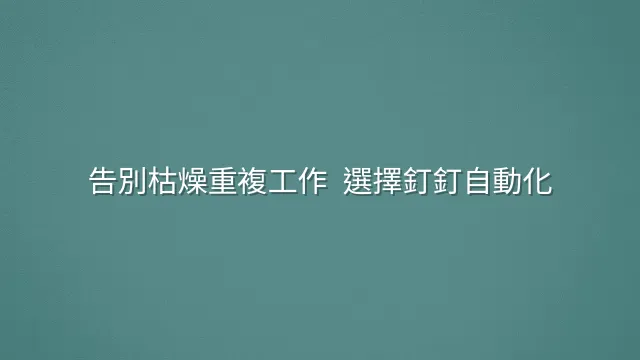 諗下,與其每日花兩粒鐘做機械式勞動,不如放低手,讓釘釘自動化幫你揸車,你專心去諗點樣升職加薪,咪更實際?
