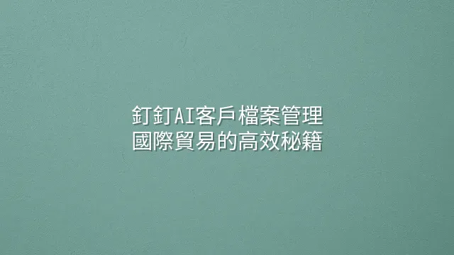 「喂,王總,上次那個巴西客戶的資料放哪了?」「是不是夾在上個月的報關單裡?還是存在雲端某個角落?」這種像尋寶一樣找客戶檔案的日子,終於可以說掰掰了!釘釘AI客戶檔案管理不是普通的電子檔倉庫,它根本是你的國際貿易「數位軍師」,不但記性好、反應快,還會主動幫你出主意。
