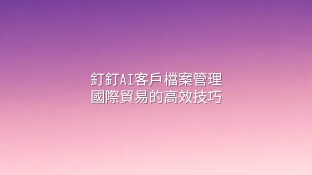 釘釘AI客戶檔案管理,聽起來是不是像某種高科技特工系統?別擔心,它不是用來監控你同事午休吃什麼的,而是專門幫你在國際貿易這場「跨國馬拉松」中,輕鬆掌握每一位客戶的動態!