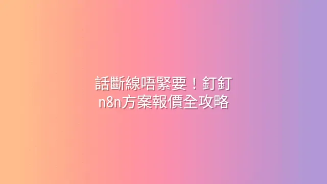話斷線唔緊要?聽落似係屋企阿媽安慰你電話訊號差,但原來真係有公司靠「斷線唔緊要」逆轉勝!先講個笑話:有間設計公司老細成日投訴同事「影都影唔到人,project拖到好似退休計畫」,點知用咗釘釘n8n方案之後,就算團隊去長洲踩單車拍靈感,一樣可以即時上載草圖、開會改稿,仲快過隔離辦公室成日「等Wi-Fi等一世」嘅對手出貨。呢個唔係傳說,係真實發生喺「創意無界設計社」嘅事。