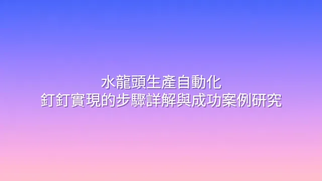 當工廠的機器開始「聽話」,老闆終於可以睡個好覺了!在水龍頭生產自動化這場大戲中,釘釘可不是跑龍套的小角色,而是串起全場的導演級存在。別以為它只是用來打卡、開會的工具,一旦把它請進車間,整個生產線彷彿被施了魔法。