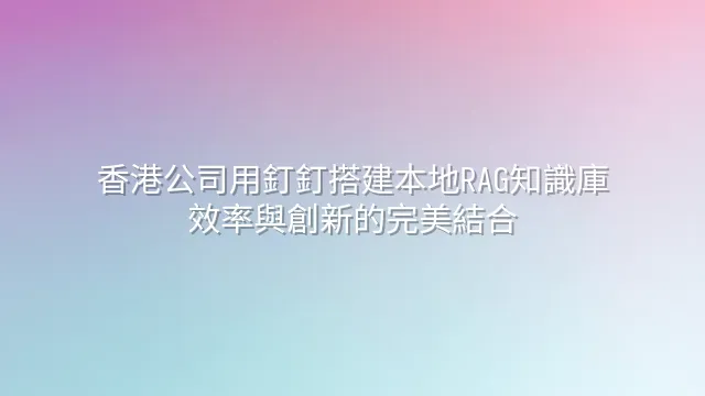 點解香港公司要用釘釘搭建本地RAG知識庫?唔通係因為老細突然中意上「釘」呢隻字?當然唔係啦!而家香港企業成日面對「問十次、答十樣」嘅尷尬場面——新同事問「份合約點簽?」,三個部門給出四個答案,最後仲要翻工到凌晨執漏。但自從有公司用釘釘整咗本地RAG知識庫,情況就好似由《無間道》變咗《AI特工隊》!例如一間中環嘅律師行,將過往十年嘅案例、內部審批流程同常見客戶問題上載到釘釘RAG系統,新扎師兄再唔使跪求前輩,只要打句「外資併購注意事項」,系統即刻彈出精準摘要+相關文件鏈結,效率升足三成。