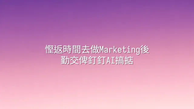 要打造高效營銷團隊,唔係逼人加班,而係將時間投資喺真正重要嘅事上——例如諗點樣令客戶笑住付款。後勤交俾AI,你先至有足夠腦容量去創造下一個爆紅campaign。
