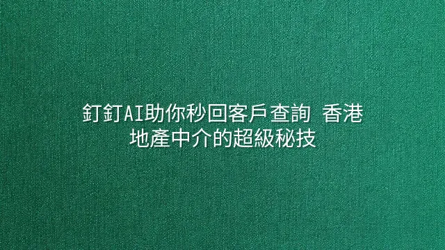 話說香港地產界「快靚正」先至贏,遲一分鐘回應,客人可能已經同對面行簽咗約。而家唔少精明中介已經偷偷用緊釘釘AI「秒回」客戶查詢,仲搞得掂過自己返工!有位做豪宅代理的Ada姐,成日飛來飛去帶客睇樓,以前手機震到手軟都要親自打字回覆,而家設定咗釘釘AI自動識別「幾時睇樓?」、「有冇海景單位?」等常見問題,即刻生成專業又貼心嘅回應,仲會自動附上最新樓盤相片同平面圖。