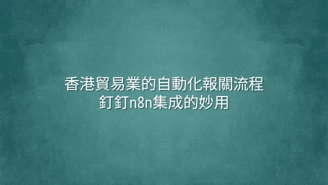 說到香港貿易業的「報關苦」,簡直是每天上演《無間道》——資料對不齊、海關問不停、客戶催到爆。但有幾間聰明公司已經偷偷換裝上陣,用釘釘+n8n集成打出一套「自動化連環腿」,打得報關流程滿地找牙。