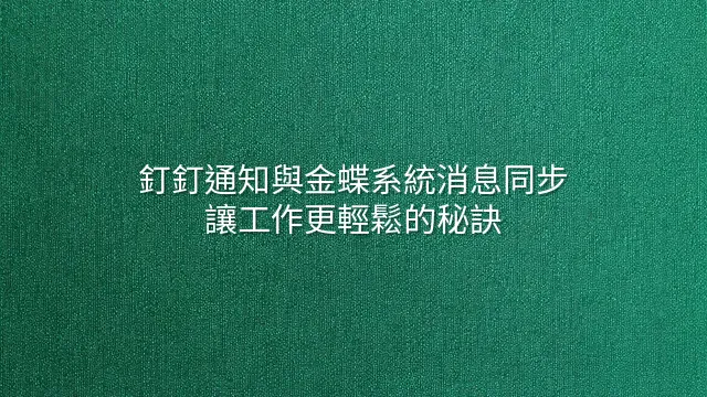 叮咚!當你正喝著咖啡、滑著釘釘,突然收到一筆金蝶系統的審批請求——不用切換頁面、不用登入後台,消息自動跳出來,是不是爽到飛起?這不是魔法,而是釘釘通知同步金蝶系統消息的真實寫照!接下來,就讓我們一步步打開這扇效率之門。