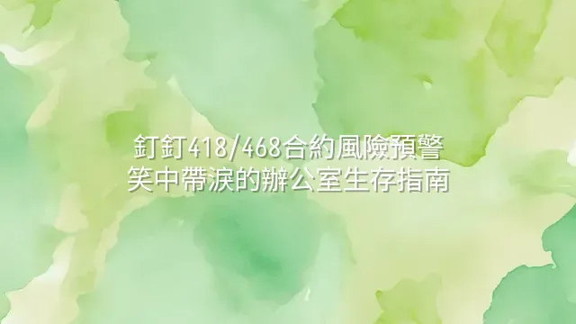 風險管理策略不是法務部的專利,而是每位打工人在茶水間都能聊出花來的生存技能。當你發現釘釘418/468合約裡藏著「自動續約且不可撤回」條款時,別急著哭,先笑——然後馬上啟動三步防禦工事。