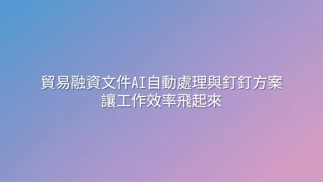 想像一下,你的貿易融資文件像雪片般飛來,而你卻不用加班到凌晨三點——這不是夢,而是AI與釘釘攜手打造的現實。當AI自動識別發票、提單和信用狀的那一刻,文件處理從「人海戰術」升級為「智慧導航」。更妙的是,這些AI處理完的資料能自動同步至釘釘的待辦清單、日程提醒,甚至直接推播給相關審核主管,彷彿有個永不疲勞的虛擬秘書在背後默默打理一切。