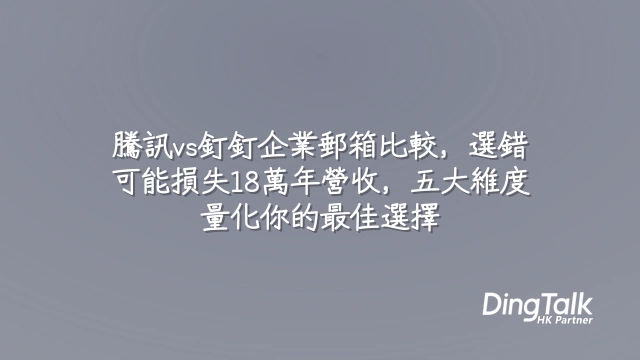 表面月費上,騰訊企業郵箱入門版約HK$18/用戶/月,釘釘郵箱免費版齊備功能但進階需HK$30+/用戶/月;然而三年TCO(總擁有成本)比較顯示,釘釘反而可節省28%開支。關鍵在於隱形成本——騰訊方案常需搭配WeChat Work、Tencent Docs及第三方視像會議工具,增加IT管理負擔與兼容風險。
